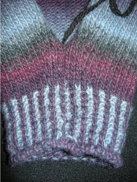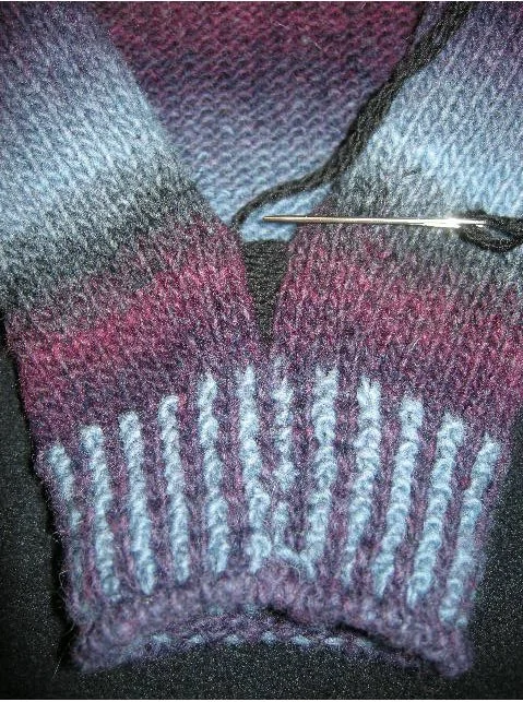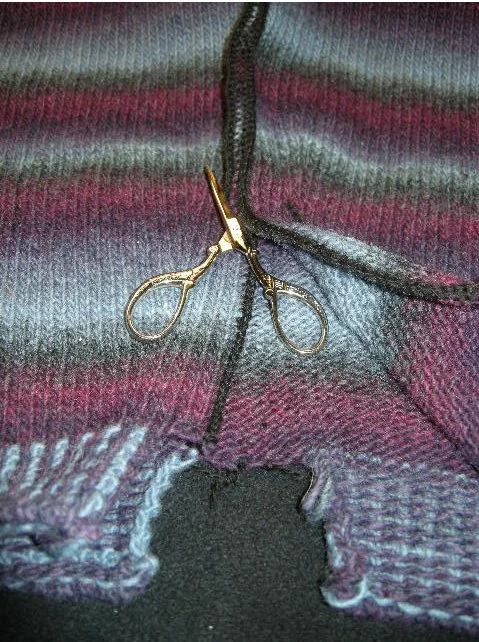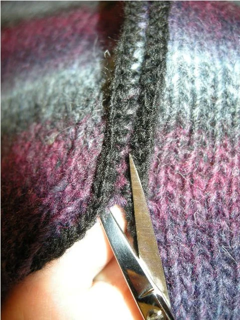 Here is a closeup of me doing that (Warning: Scissors + Knitting may = dangerous viewing for the squeamish)