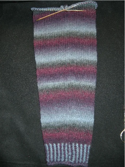 They let us match the patterns in our sleeves presicely, while giving us the perfect place to hide yarn tails from stranded colorwork without weaving them in. You can read more about the tail-hiding colorwork version of this theory in my book, but for today's illustration, I'm going to show you some conjoined sleeves made with only one strand. I made these for my Elizabeth Zimmerman Percentage Sweater. I'm at the point in the EZPS process where I need to have two sleeves to join onto the body tube in order to start shaping the upper half of the sweater. I have long suspected that getting two matching sleeves would be tricky using self-striping yarn, and my suspicion was correct. Add 2-color corrugated rib to the process and things can go squirrely pretty quickly. My solution: Knit two sleeves together with steeks in between, cut them apart, then make a seam in each one.