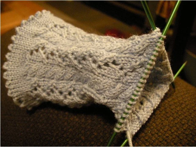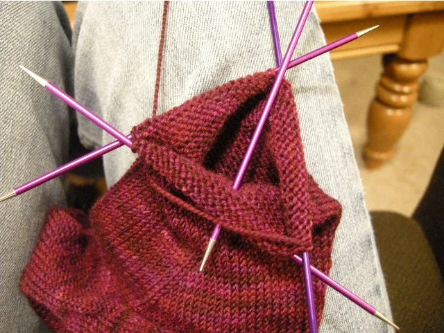 So all my knitting is pointy today. The coffee table, and the arms of my knitting chair, and my lap, are hedgehoggy with DPNs. Nice work, if you can get it.