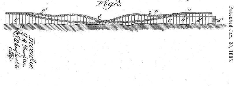 "Roller coasting structure“ (US310966A) by LaMarcus A. Thompson, 1885