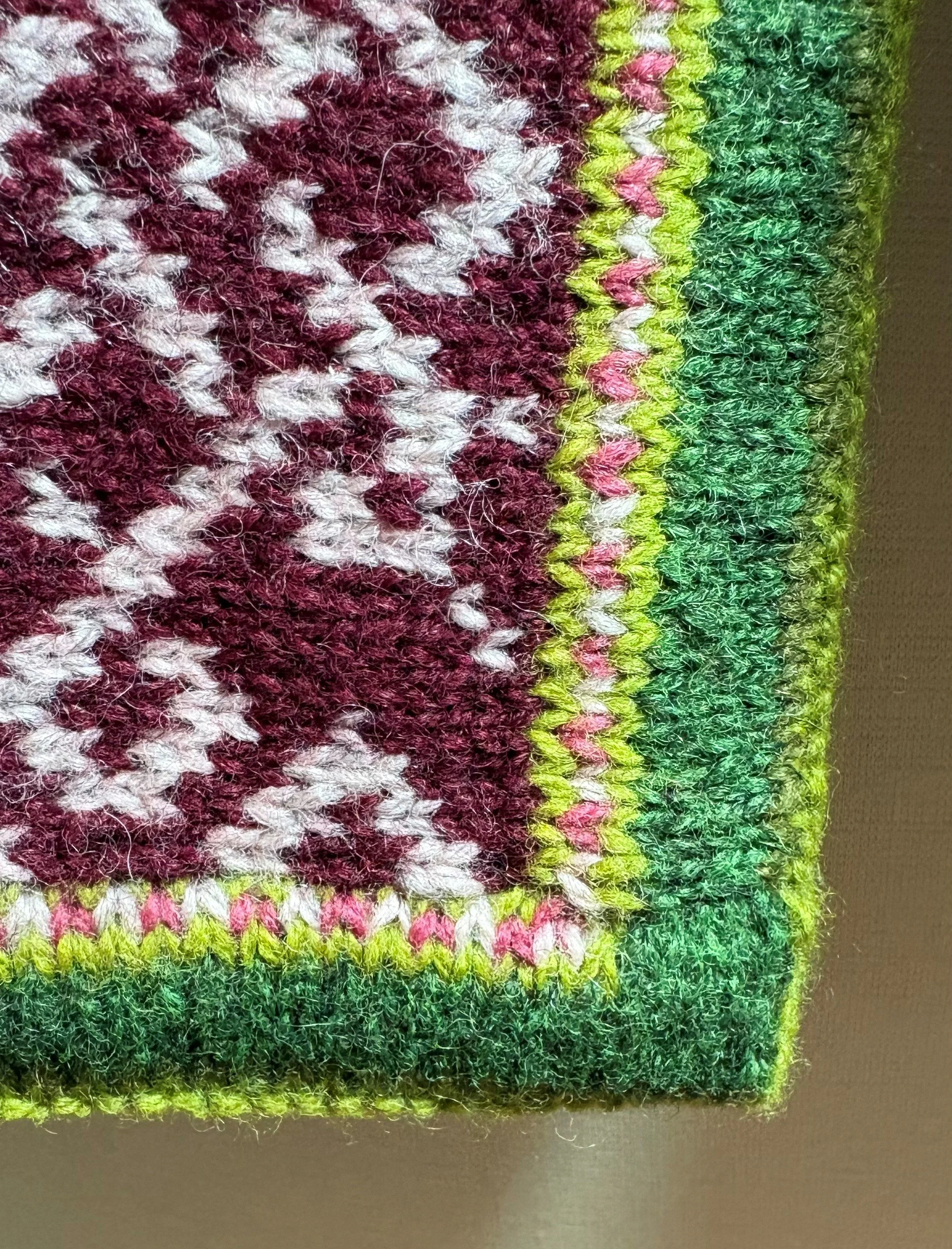 A peek at the steek, inside, where the colors change and the Magic happens.