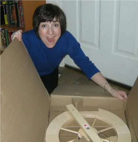 Friday was a banner day. My 39th 25th birthday present arrived with grand fanfare. The smallies called me on my mobile as I sat in traffic on the way home from the office: "Mom! A BIG BOX came on a brown truck!" "How big is it?" I asked "Cam! Get the measuring tape - Mom wants to know how big it is!" Sounds of measurements being taken by children. My excitement mounts. Traffic stubbornly declines to move. "It's 27 inches high and 20 inches wide. Who's Lendrum?" My knuckles whiten on the wheel and I will the traffic logjam to release with all the power of my being...